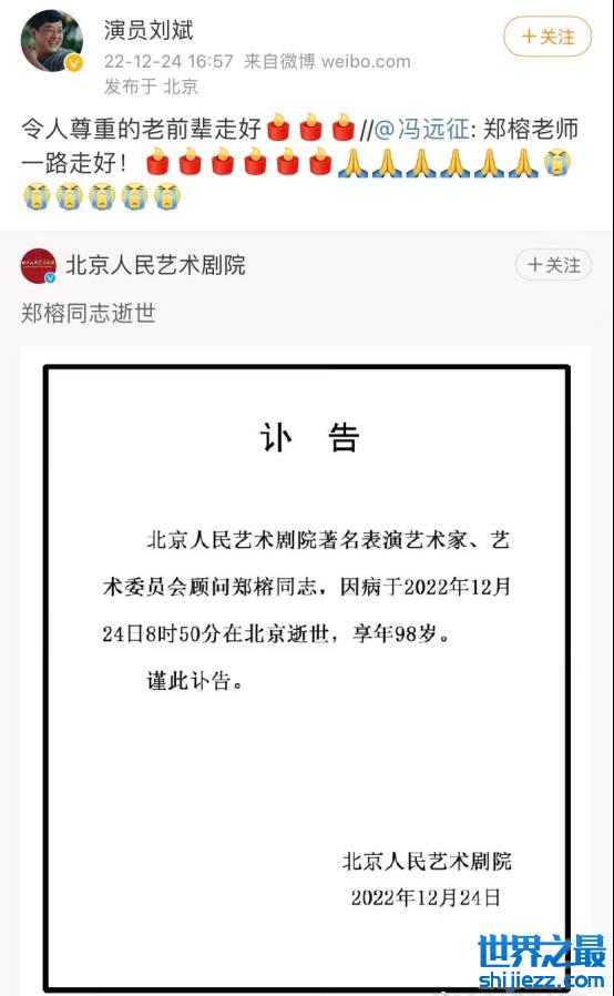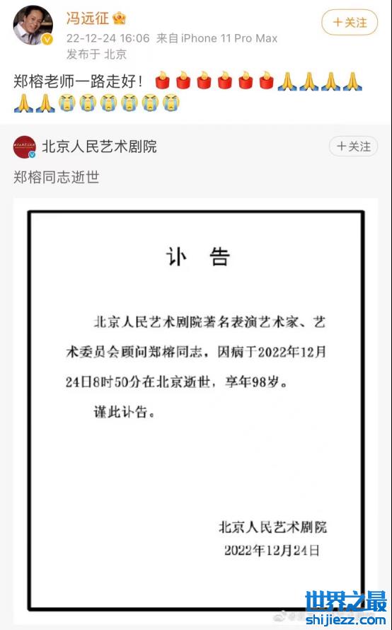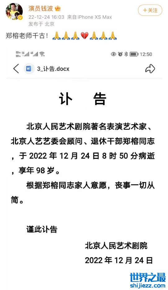 曾经和郑榕老师合作《茶馆》的演员钱波也现身悼念,并截图了北京人民艺术剧院发出的《讣告》,称尊重郑榕老师的家人意见,丧事将会一切从简。