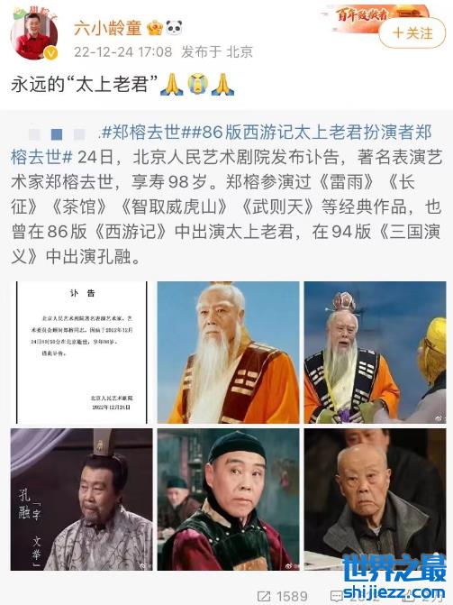 “太上老君”郑榕去世,众星发文悼念,《西游记》有多名演员去世 ...