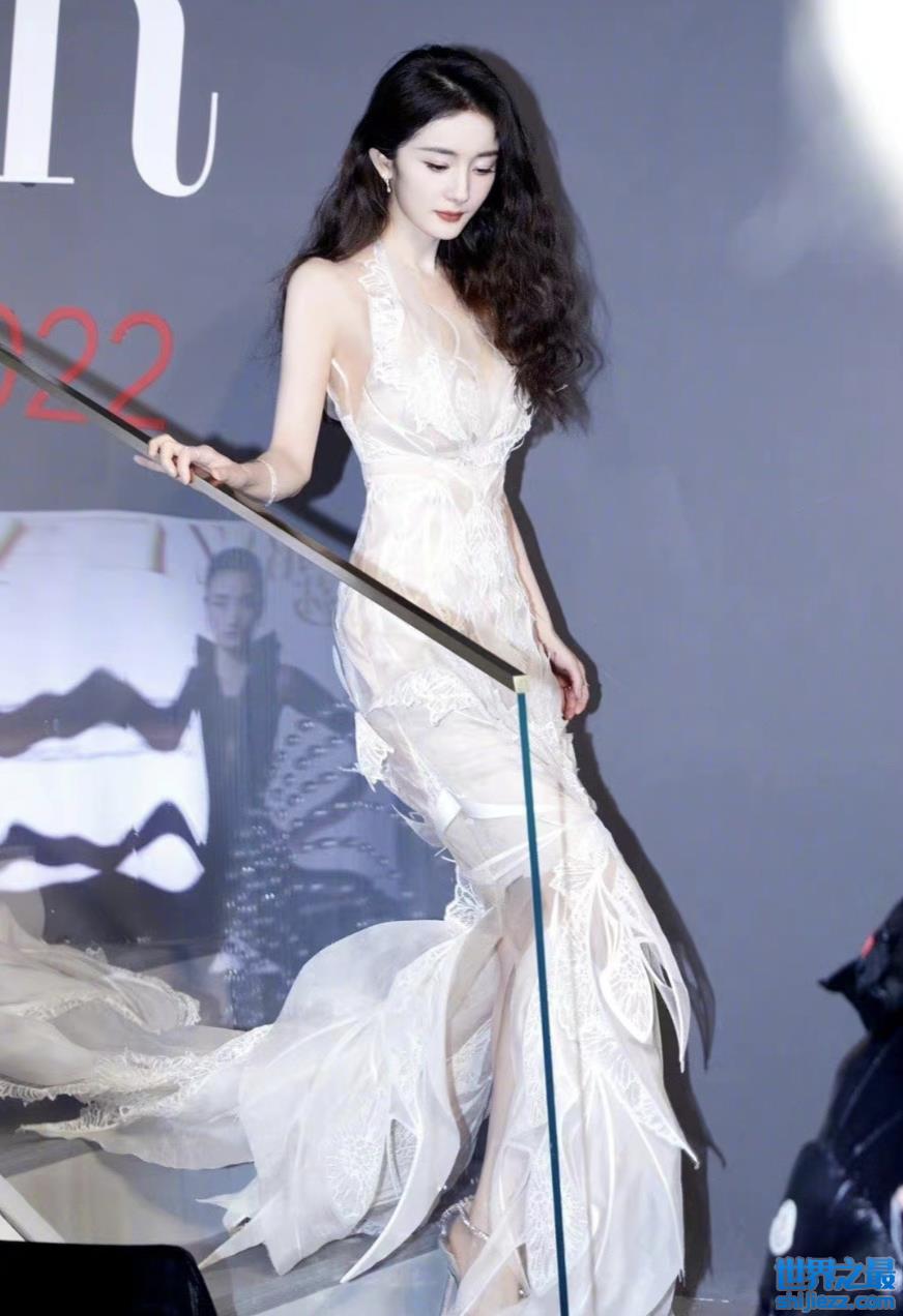 当天杨幂身穿一条白色的蕾丝纱裙,裙子是紧身鱼尾的设计,轻纱的材质,让杨幂这身造型又性感又不失仙气。