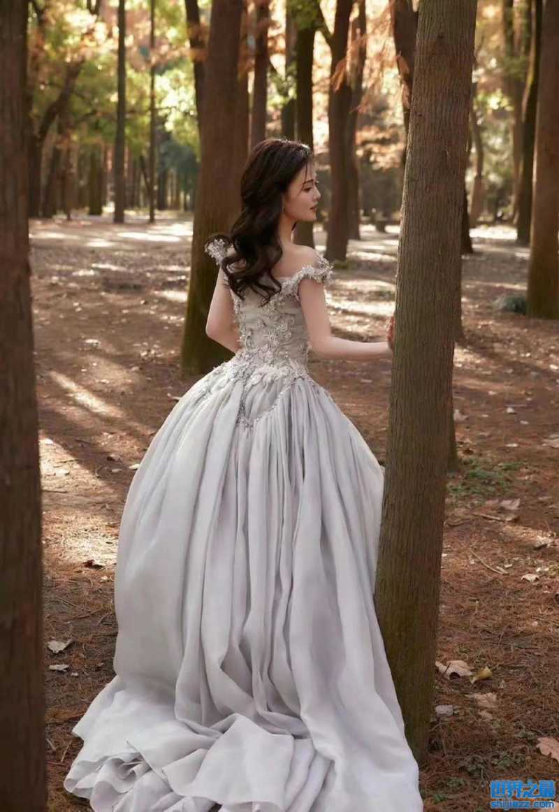 不得不说,白鹿的工作室也是很会的,让她在类似森林的场景里拍照,这个回眸一笑,氛围感拉满了,妥妥的在逃公主。