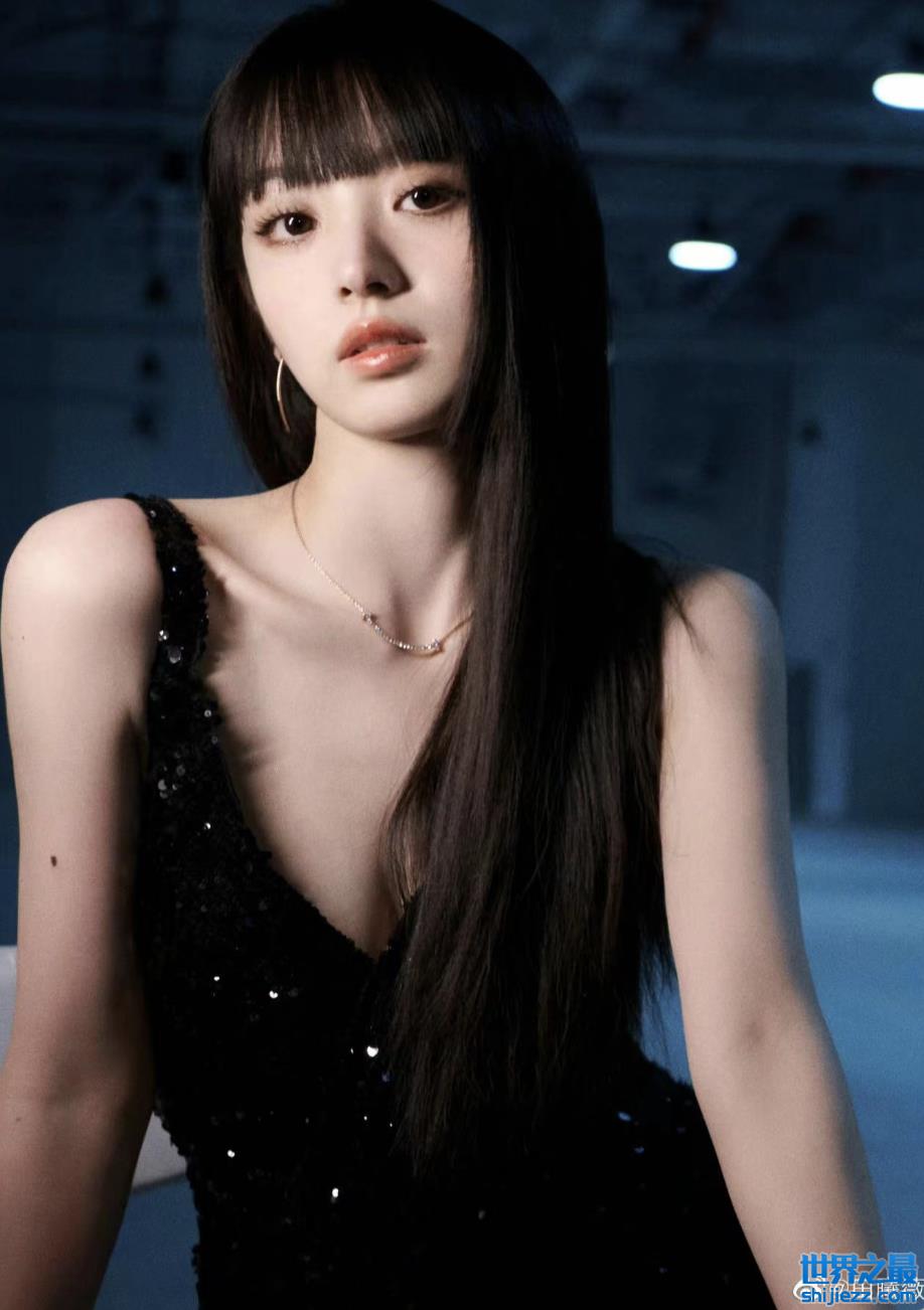 她身穿一条紧身礼服裙,裙子上缀满了黑色的亮片,还是深v加高开叉的设计,真的是非常的辣妹。