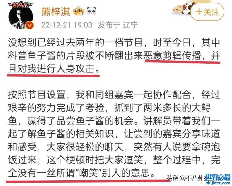 虽然是一档两年前的综艺,但被再扒出来议论,还是对当事人造成了影响。熊梓淇首先发声,表示他是遭到了恶意剪辑,完全没有一丝嘲笑别人的意思。
