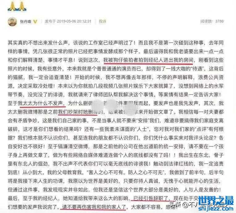 随着舆论的持续发酵,张丹峰曾发文回应,希望不要伤害家人,还表示经纪人毕滢引咎辞职了。