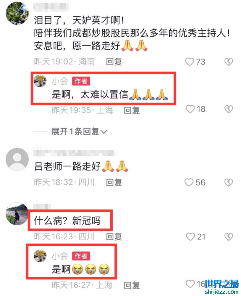 在评论区,好友透露吕冲突然病逝的原因是与感染新冠,想来身为主持人的他平日工作异常忙碌,所以身体状况不是很好,没想到走得那么突然。