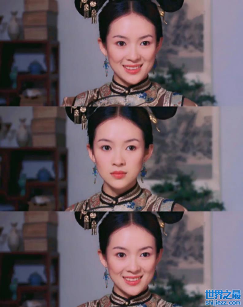 穿上清宫装的章子怡,透着一股清新灵秀的美,一张鹅蛋脸美得分外动人。