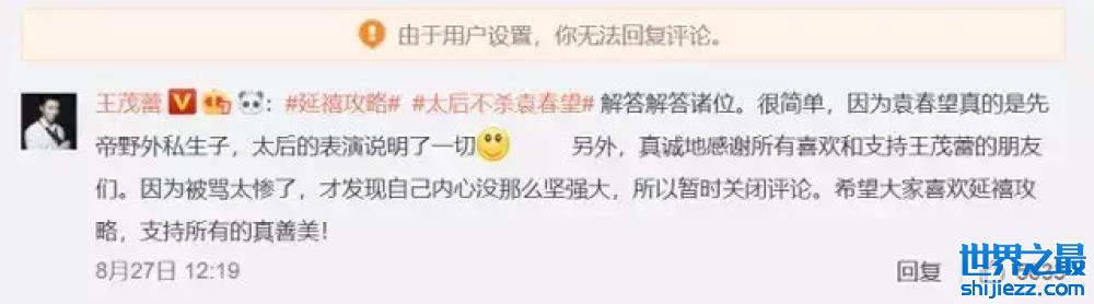 虽然这也说明了王茂蕾的演技精湛,但观众们还是不要太沉浸剧情,而王茂蕾也只得关掉了用户评论,用演技为“袁春望”背了锅。