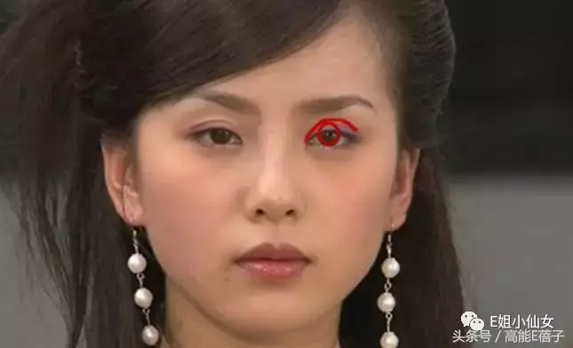 最近很红的马伊琍也是如此,即使画着大浓妆,瞳仁也被遮掉了许多。