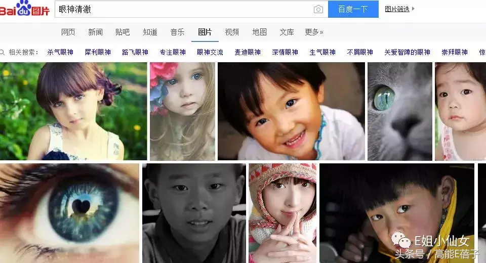 搜索眼神清澈,你会发现出来的图片大多都是小朋友的照片,为什么会这样呢?我们先从小孩子眼睛的特点说起。