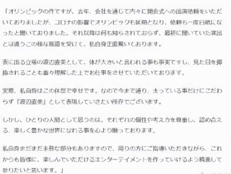 对于外界的恶意攻击,渡边直美无奈地说,虽然她的身体块头很大,但她觉得非常幸福,所以也希望大家能互相尊重。