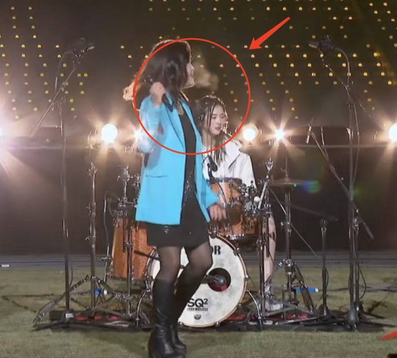 田震也是身穿短裙,美丽冻人,在舞台上演唱时直接嘴里冒白烟,看得出来现场是真的冷啊!