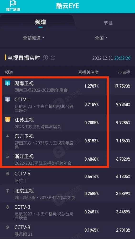 12月31日晚,各大卫视的跨年晚会纷纷如约而至,这几台重磅打造的晚会开播没多久,湖南卫视就率先领跑,实时收视就已突破1,而苏有朋王心凌作为压轴表演的嘉宾,更是将收视率顺利拉到了新的高度,在所有频道中独占鳌头,而且还是以断层领跑的强势姿态。