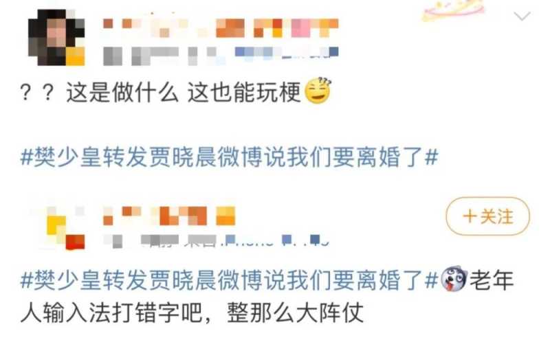 这短短几分钟,感觉樊少皇的内心做出来剧烈的挣扎,这是要离婚还是要离开啊?网友调侃道:“老年人输入法打错字吧,新年开局不适合玩离婚梗”。