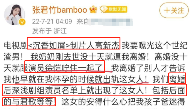 而叶青被换,正是因为徐恺咛跟制片人高新杰有不正当的关系,高新杰利用职权给小夫人找了个角色,还疯狂给她加戏,引得原配直接在网上爆料。