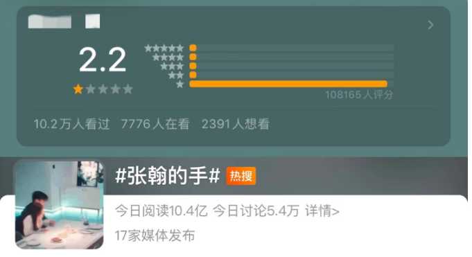 瞬时网上一片谴责,关于“咸猪手”这个话题也成为大众的舆论点,这部剧的评分更是低到2.2分。