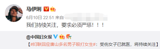 周迅、海清、关悦、马伊琍、张凯丽、杨钰莹等人,都呼吁要严惩那几位男子。