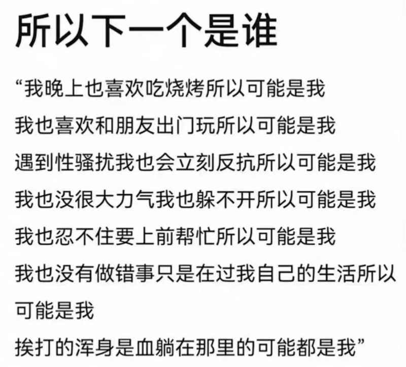 在她眼中,此次恶性事件根本不是寻衅滋事这么简单,社会各界绝不能容忍这种人的存在,更不能为他们举起庇护伞!