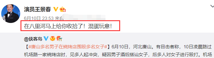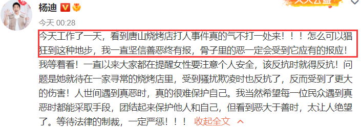 就是这样一个很少说脏话的男星,看到唐山打人事件后,暴怒道:“下次通报的时候,直接带遗照吧。 ”