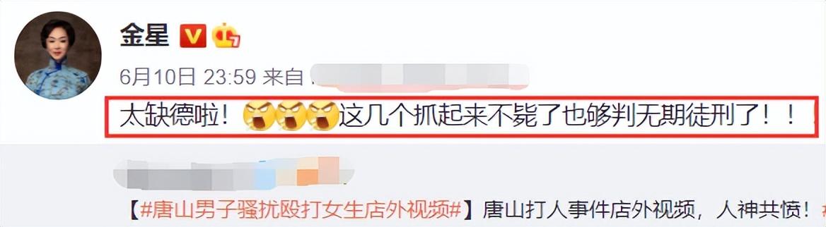 金星连发三条动态怒斥施暴者,称他们太缺德了,就算不毙了,也应该被判无期徒刑。