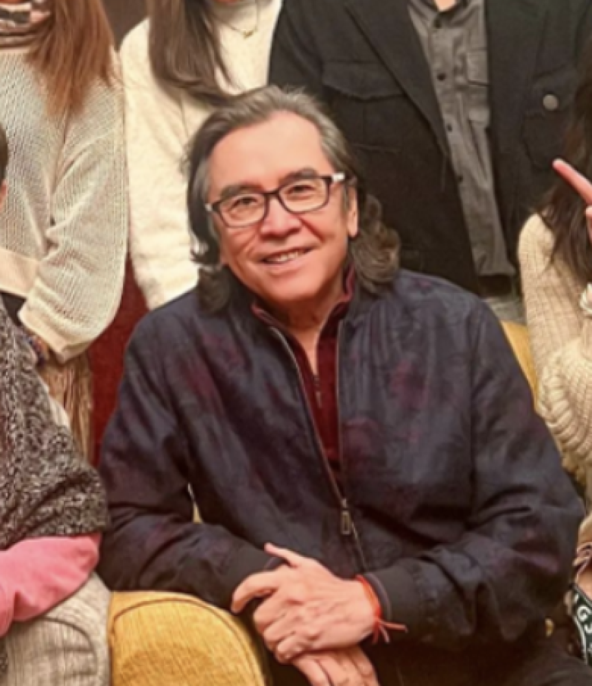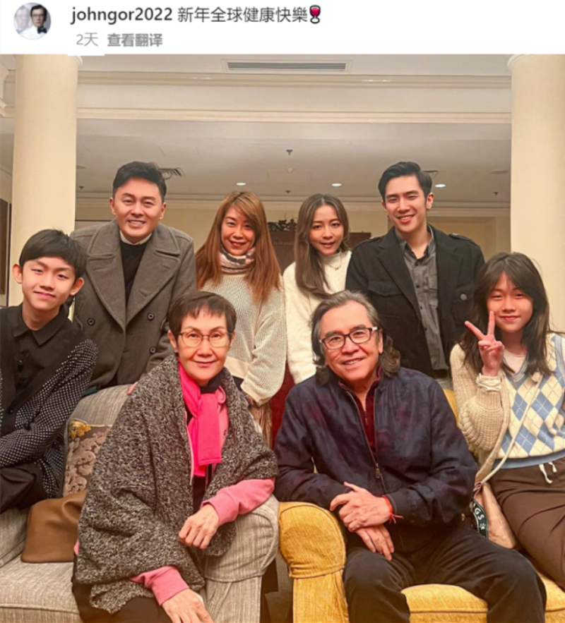 姜大卫罕见晒出全家福,祝福大家新年快乐。照片中的姜大卫诶穿着简单的夹克外套搭配衬衫,头发一丝不苟地梳在脑后,脸上架着副眼镜,笑容明媚。