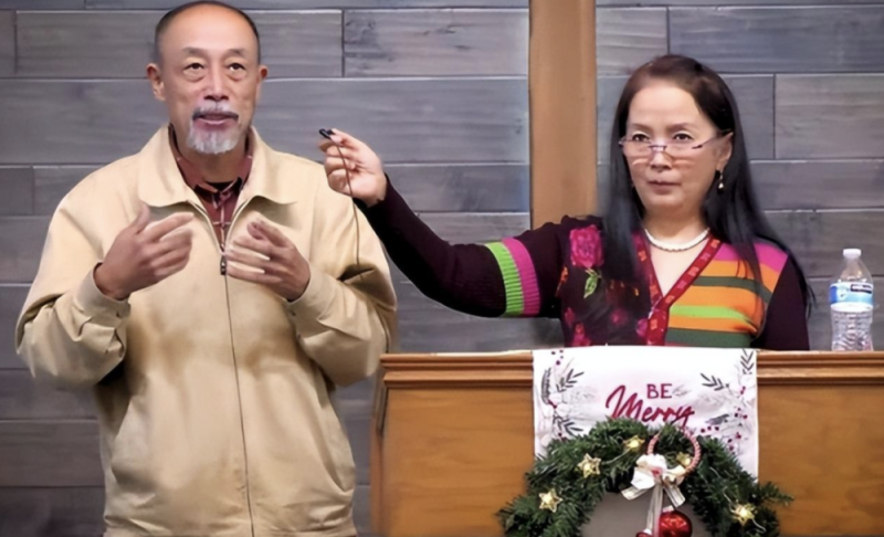吕丽萍的丈夫孙海英也一同露面,两人在台上慷慨激昂地演讲,吕丽萍戴着个小眼镜儿,表情看起来有几分严肃。