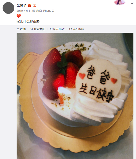 每到父亲节还有父亲的生日,张馨予都会用心为父亲庆祝,每年也都会亲自给父亲做生日蛋糕,非常孝顺,张馨予也曾表示:“家比什么都重要”。
