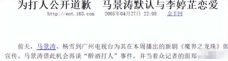 知情人爆料,其实马景涛和吴佳尼早几年就分道扬镳了,原因是马景涛经常酒后家暴,酒醒后又跪地道歉,循环往复,吴佳尼早就受不了了。