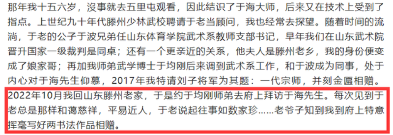 另外还有知情人透露,于海去世前还摔了一跤,几年前大徒弟还透露师父的身体因为过度劳累,一大把年纪各种伤病,身体不好还不得不在很多场合上奔波。