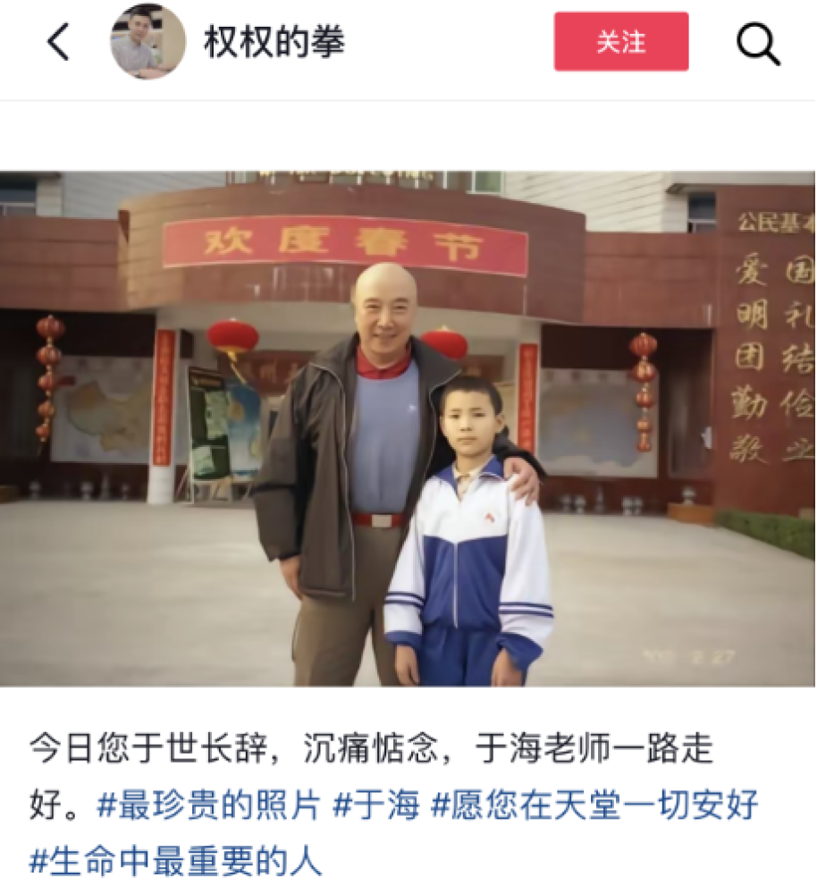 斯人已逝,回忆永驻,惟愿于海老师在另个世界可以一切安好,继续实现自己未尽的心愿。
