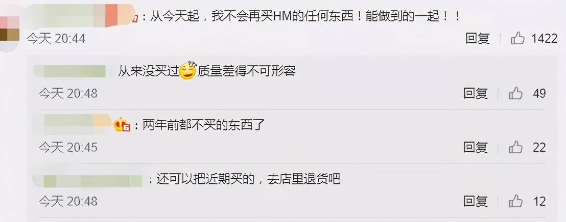 据其2020年财报,中国是H&M第四大销售市场,但H&M禁止与新疆地区的服装厂合作,还取消采购产品,而且就冠冕堂皇发在官网上,毫无商业伦理,逾越底线,因而引发了争议。现在做个回应又如此傲慢无理,全然无视中国消费者的感情,一边赚中国市场的钱,一边又造谣诋毁新疆棉花还毫无悔意,也遭到网友的痛斥。很多网友表示要“用脚投票”,用实际行动来给他们上一课。