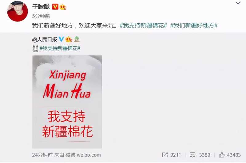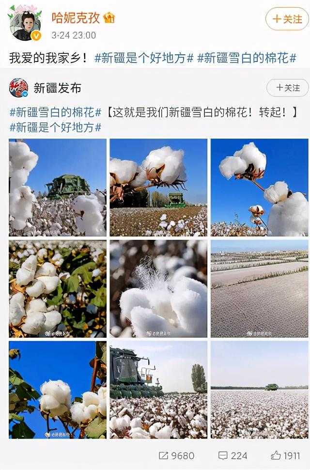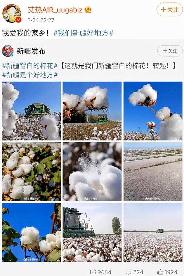 与此同时,众多新疆籍的明星也纷纷发声,支持自己的家乡新疆和新疆产的棉花。
