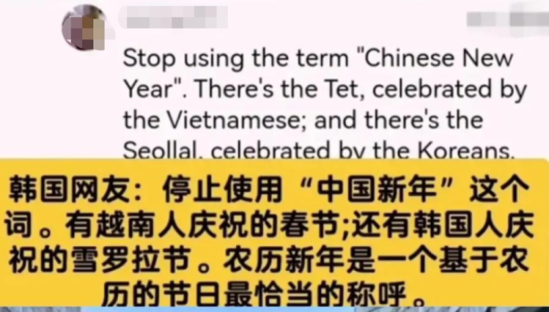 韩国网友也乘机作妖,呼吁大家不要再使用“中国新年”的字样,因为这也是韩国的节日。
