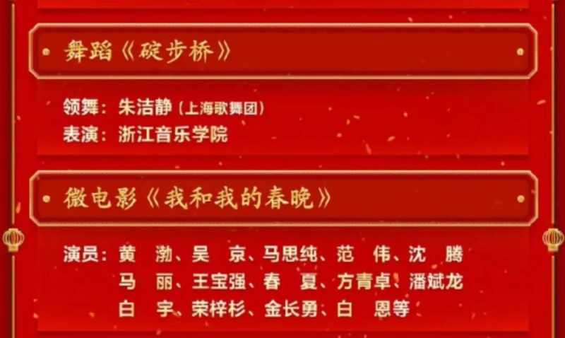 除了小品《坑》,沈腾马丽还会表演微电影《我和我的春晚》,不止是他们,黄渤、吴京、王宝强、马思纯、春夏等人都会演绎这个节目,都是实力派演员,一把子期待了。