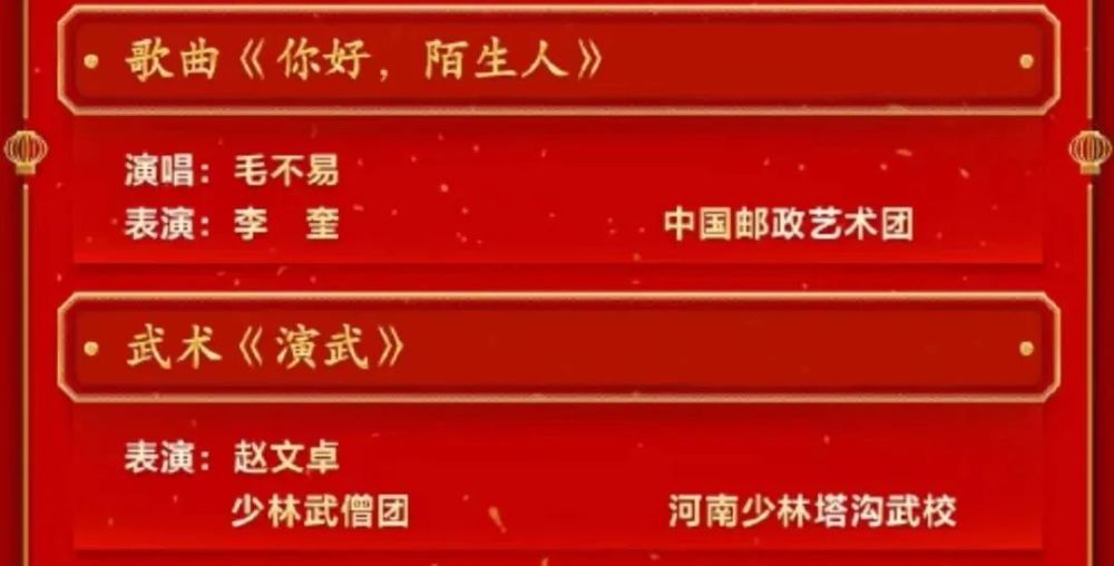 其实,整体表演基本上都是组合造成,个人单独秀不多,只有8个,包括黄渤《小哥》、许嵩《合拍》、毛不易《你好陌生人》、赵文卓《演武》等等。