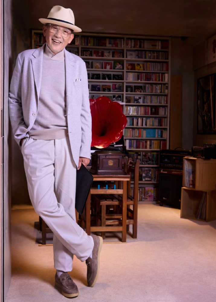 接受采访中,秦汉换了多套装扮,身穿剪裁得体的灰色西装,内搭同色系的高领毛衣,戴着复古风的爵士帽,整个人看上去儒雅贵气,很显斯文,如果不说秦汉是快奔八十的人,说他四五十岁恐怕都有人相信吧,真觉得他是逆生长,一点儿不显老。