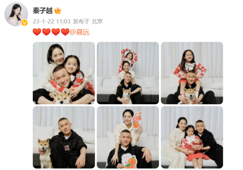 1月22日大年初一,44岁的聂远趁着节日的喜庆官宣二胎宝宝的出生,他晒出全家福并艾特老婆秦子越,写道:“1+2+3+4”,秦子越随后连发四个爱心,还单独晒出聂远的单人照,一家四口好幸福,网友也为两人送来了祝福。
