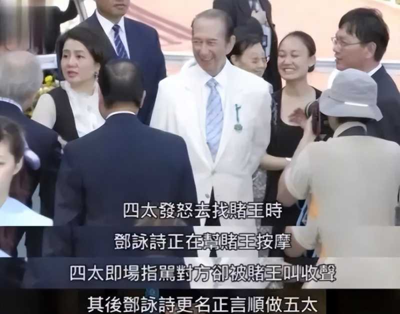 一次邓咏诗正在为赌王做按摩,两人正浓情蜜语,被四太梁安琪抓到,当场怒吼邓咏诗:滚出去。