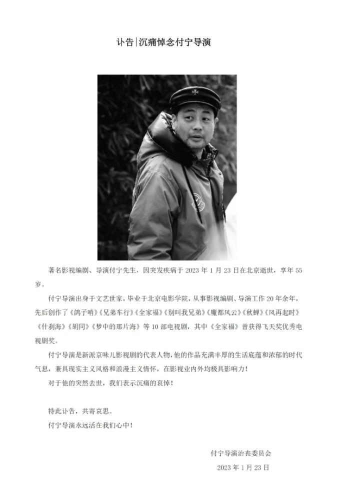 据悉,付宁是1月23日在北京逝世,享年55岁,而后付宁治丧委员会对外发布讣告,提到他是突然去世,不过关于去世的原因及细节一直没有对外透露,这也成了大家关注的点,有人猜测他是不是心脏方面的问题,毕竟去世前两天还和好友通话拜年,当时身体状况还尚佳。