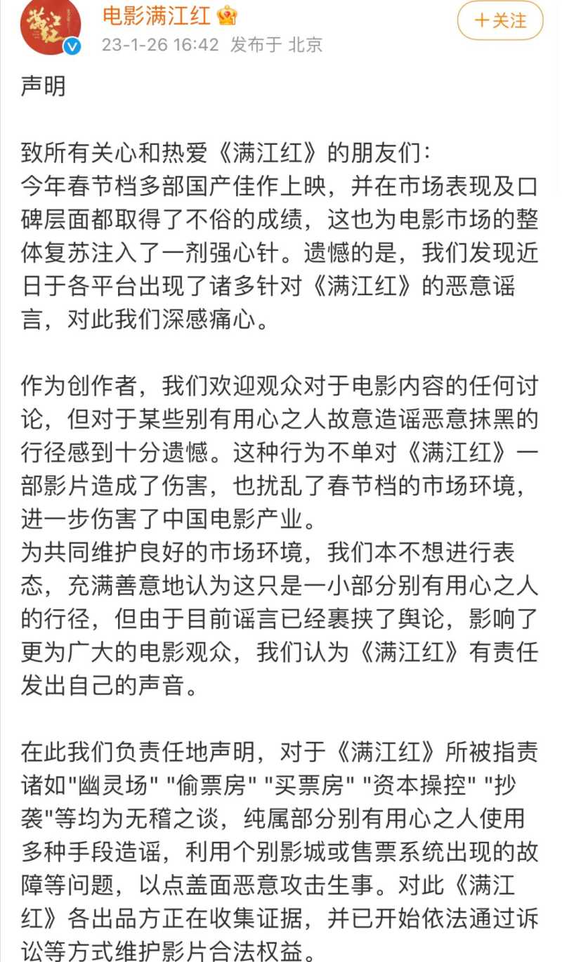 不过,《满江红》在票房赢麻了的同时,也被不少网友质疑偷票房、幽灵票房、锁场、霸道抢排片、辱女、疑似抄袭《龙门镖局》之中的梗等等。