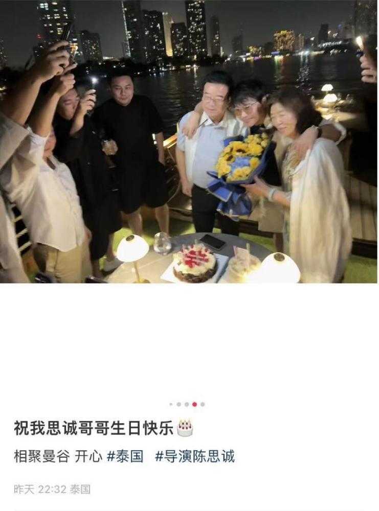 而在1月26日晚,有好友曾曝光陈思诚在豪华游艇上提前庆生的画面,地点也是在曼谷,照片中,陈思诚的父母也有罕见露面,身边还有一群亲戚朋友聚在一起热热闹闹给陈思诚庆祝。