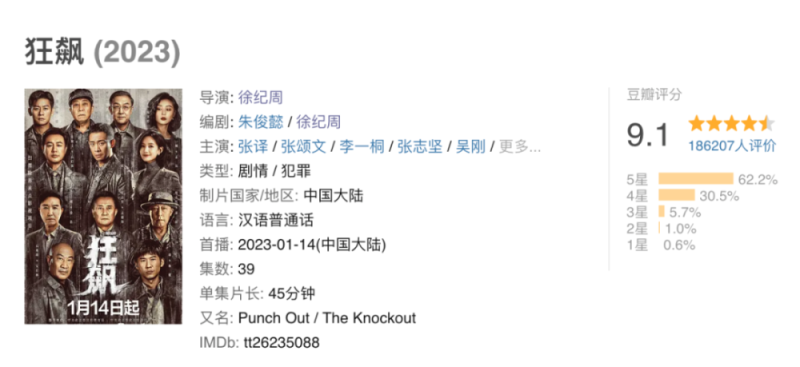 开年第一爆剧,已经花落《狂飙》,超18万观众,为它打出9.1的高分。