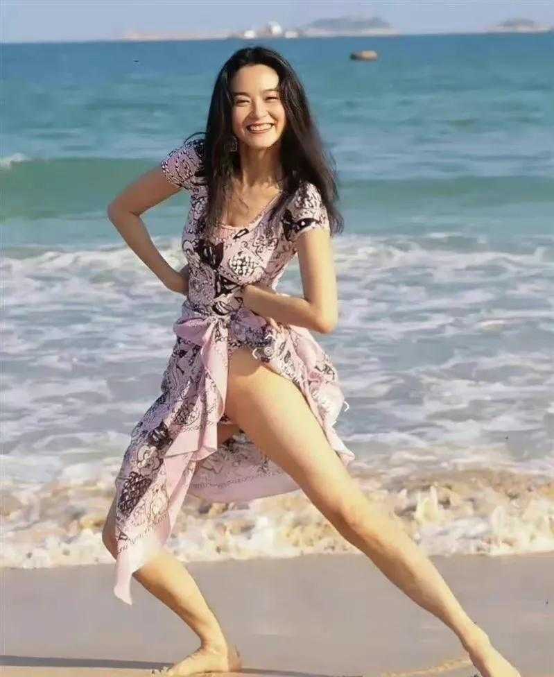 林青霞的罕见旧照!一头黑发长发,脸上露出的甜美的笑容,林青霞身材好好啊,她还直接把裙子的一角掀开,大秀美腿。