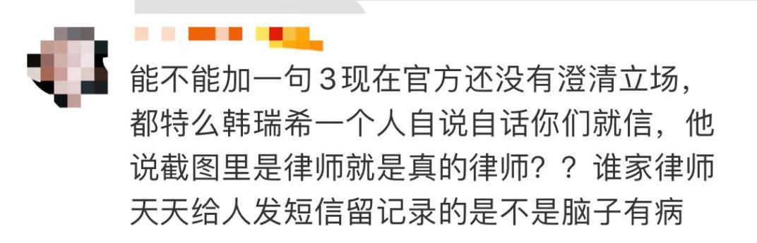 不过也有粉丝表明,这些都是郑多恩和韩瑞希的一面之词,单凭几段聊天对话并不能代表真相。况且,谁知道是不是故意捏造抹黑呢。毕竟韩瑞希之前和YG丑闻事件也有牵连,她说出来的话可信度大打折扣。