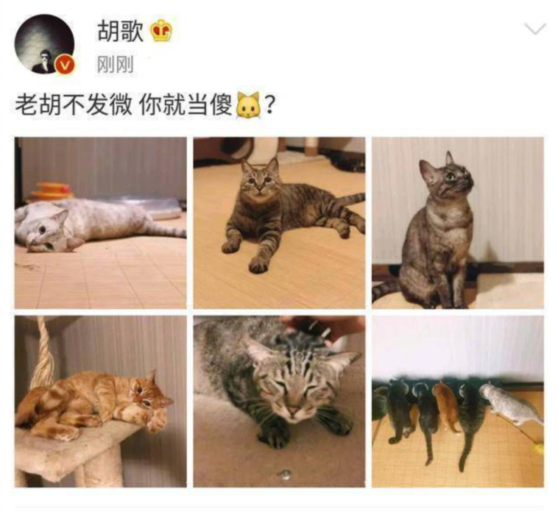 胡歌曾在《天天向上》说过这样一句话:我的另一半喜不喜欢猫不重要,重要的是我的猫喜不喜欢她。