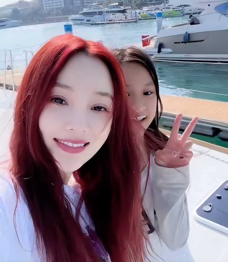 10岁甜馨在三亚游玩,站在游艇上自拍,妈妈李小璐打扮超年轻