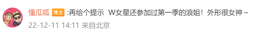 最后该八卦媒体又给出了一些关键的信息,W女星参加过综艺节目浪姐的第一季,而且还说外形很女神,并且在直播间里说了W女星是王姓女演员。