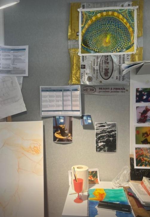 李嫣分享自己国外宿舍的内景照,仅仅只是拍摄了一张自己学习绘画的一角,非常有意思。