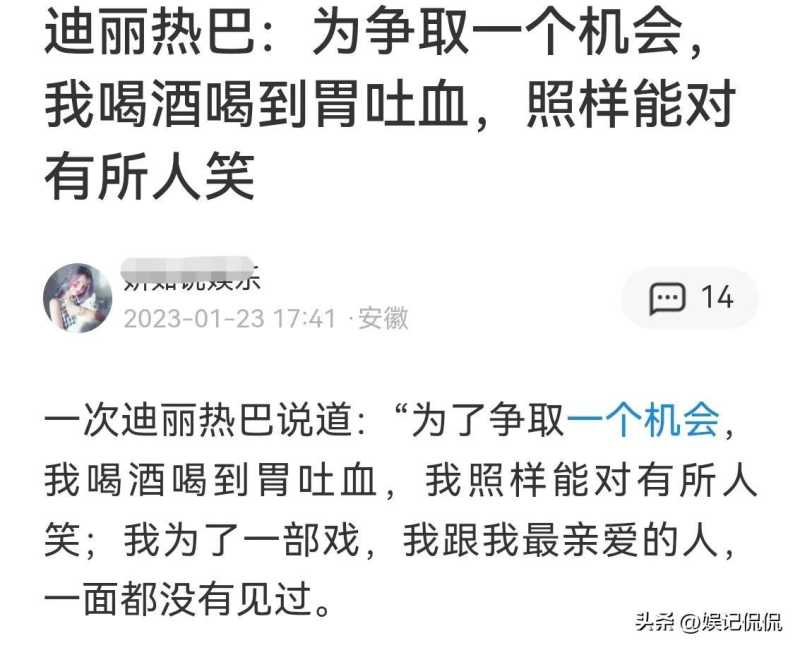 三是她的旗下艺人热巴曾说过,为了角色和领导喝酒喝到了胃出血,至于有没有其他,咱也别问了,毕竟谁的生活都不容易。