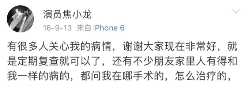翻看焦小龙的社交账号,他曾在16年的时候也讲到自己的病情,说谢谢大家的关心,现在已经非常好了,只要定期复查就可以了,当时他还晒出自己手术后的照片,只是没想到时隔多年他的脑癌复发,还是没能扛过去,难以想象他的妻子该如何接受这个悲痛消息。