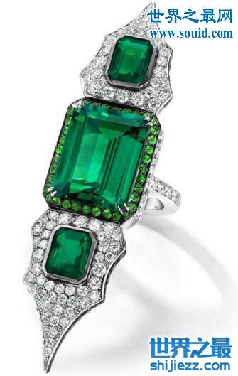 这枚经常露面的祖母绿戒指,是由著名的纽约华裔顶级珠宝设计师Anna Hu定制的,产自哥伦比亚,祖母绿的重量达到10.57克拉。独家为那英设计的高级定制珠宝《天盾颂》,戒指上三颗近14克拉的顶级哥伦比亚祖母绿。