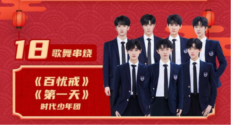 时代少年团表演了歌曲串烧《百忧戒》《第一天》,从本人到歌曲都没啥知名度。